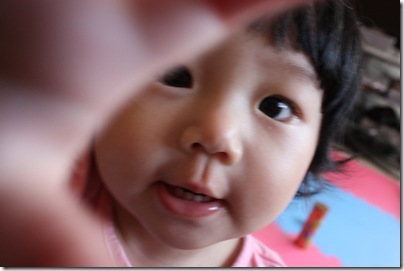 oh ya, this is her latest fav toy, the hello kitty… sometimes she would pat it like a baby, and sometimes she would just toss it away… but most of the times, she is mmmmmm-mucking it…