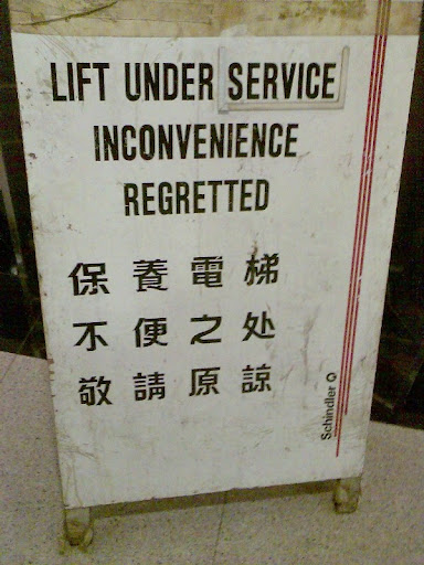 saw this sign at gmt this morning... this is so stupid, 保养电梯? what, the lift is getting a face'lift'?